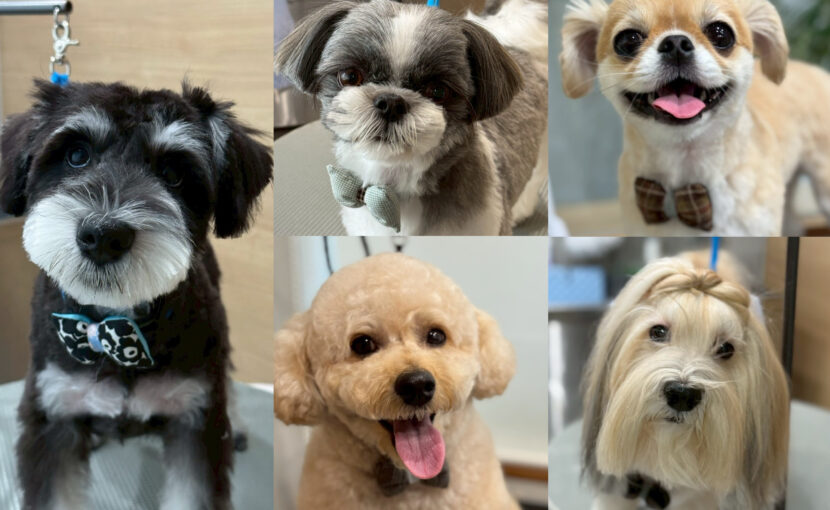チョコくん、クルミちゃん、カカオくん、ラテちゃん、コスモくんのトリミングでした✨